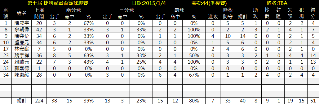 TBA 24號 賴鵬元 帶傷上陣仍攻下13分,意志力驚人,穩定中距離給與44TH相當威脅。